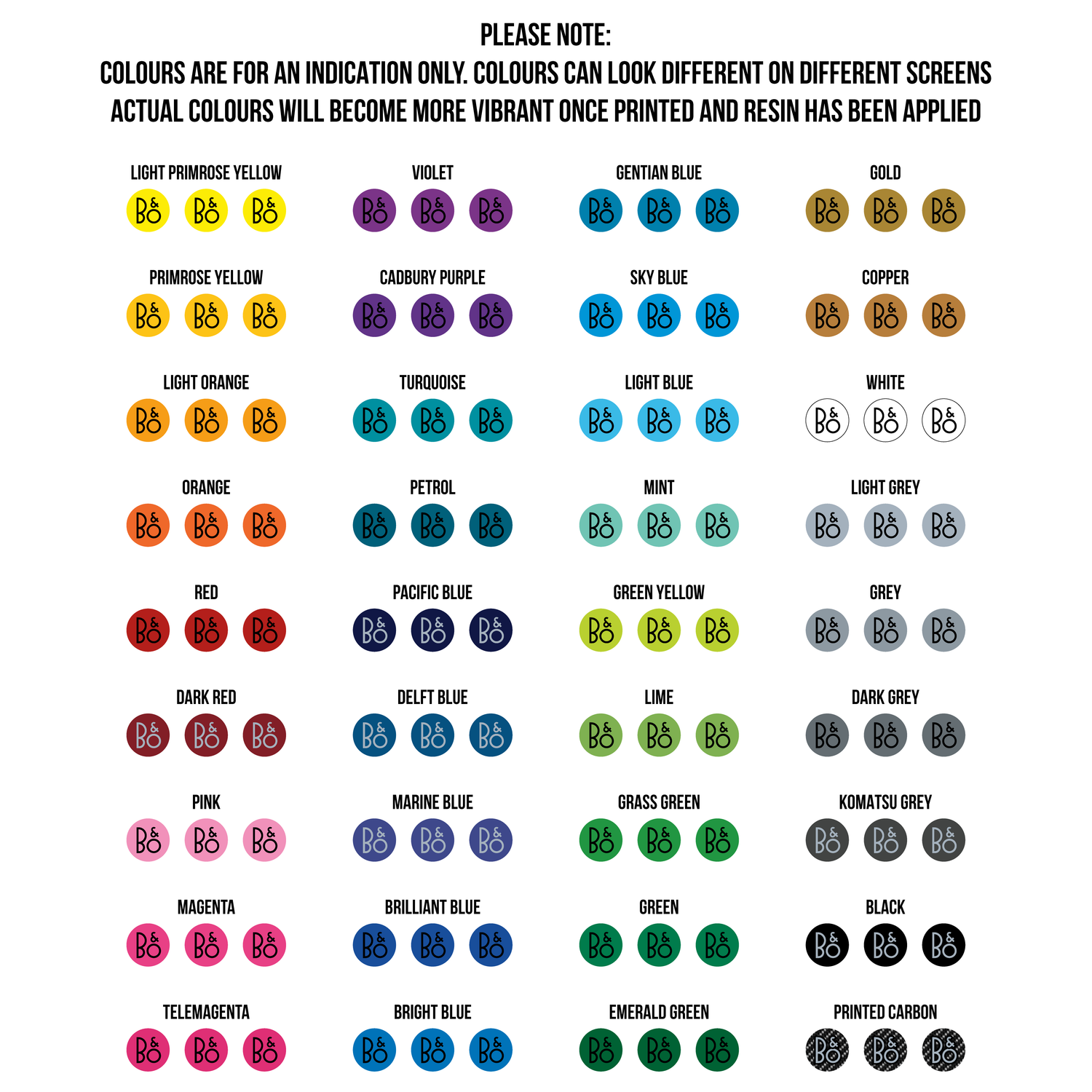- Set only comes as one single colour with a black "B&o" logo. (Dark colours will have a light grey logo). Mix & Match not available on this product